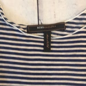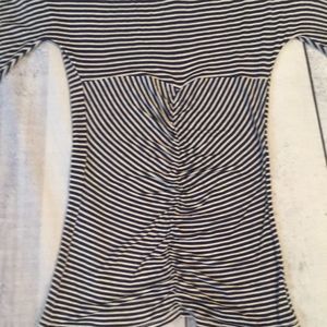 BCBG Sample, Blue & White Striped Long-Sleeved Tee w/Ruched Back