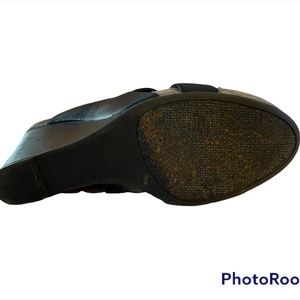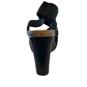 Wedge elastic straps sandals. Easy on and off, stays put while walking. Great for casual or office. Usual wear and tear.