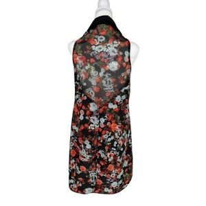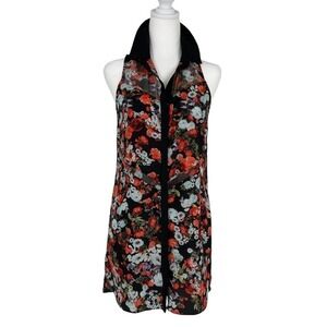 BCBG Shear Floral Sleeveless V-Neck Button Up Blouse Or Micro Mini Size XS