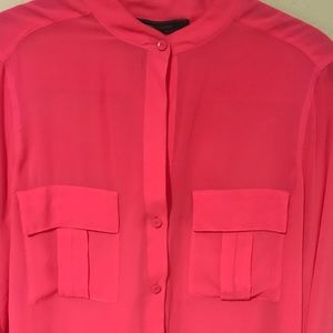 BCBG Sheer Hot Pink Blouse. Small. Excellent Condition. Small pen marks (?) on back of sleeve (see last photo) haven’t tried washing out, but I’m pretty sure it’ll come out right away