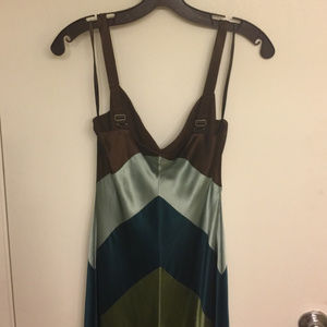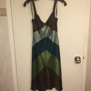 Beautiful silk dress in earthy tones. Slip dress. Adjustable straps. Beautiful silk with polyester lining. Worn once or twice. Size is petite sizing: 4P