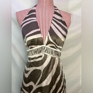 BCBG Silk Halter Dress Zebra Striped Brown Champagne Cocktail $260 Size 6