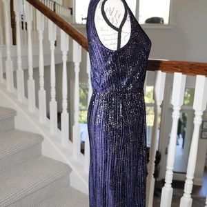 BCBG dark navy with gold flecks pant suit. Size XS. New with Tags.