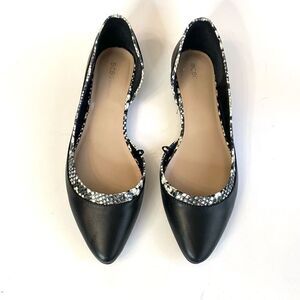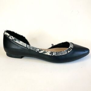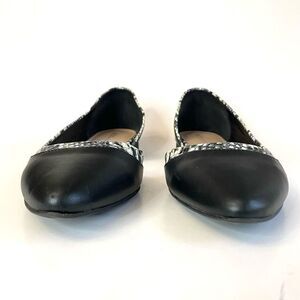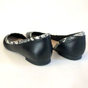 BCBG Snake Print Black White Vegan Leather Round Point Toe Flats Women’s Size 10