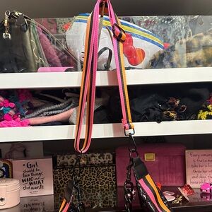 Elevate your style with this chic black quilted women's bag. Featuring a bold chain strap and vibrant pink and orange strap/accents, this bag is perfect for any occasion. May be worn on shoulder or crossbody with detachable straps.