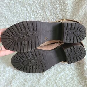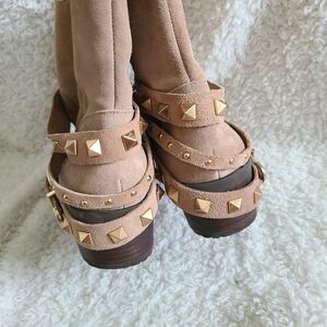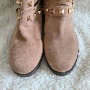 BCBG Suede Tan Studded Strap Zipper Moto Boots EUC!