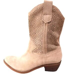 BCBG Suede Western Style Boots Cream/Taupe Cutout Cowboy Boots size 6.5