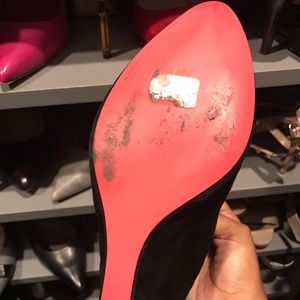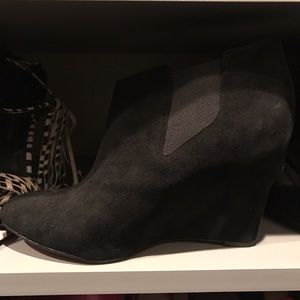 BCBG black suede booties. Wedge booties great for going out & walking around, very comfortable. Bottom sole is red, and purchased at BCBG store, Size 10b