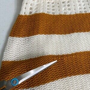 BCBG Sweater Halter Dress in Ivory & Caramel Spice Crochet Knit Stripe Lined