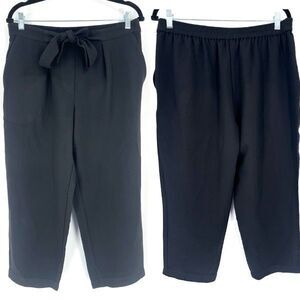 BCBG Tie Waist Wide Leg Pull On Black Cropped Pants Culottes Size Large Hi Rise