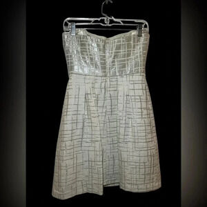 BCBG Trudy strapless Cream Silver Metallic Jacquard a-line dress NWOT