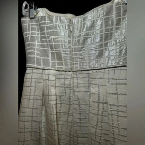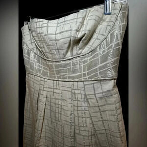 BCBG Trudy strapless Cream Silver Metallic Jacquard a-line dress NWOT. Size 6.