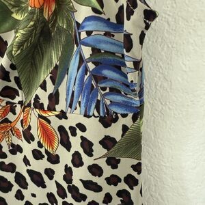 Keywords: BCBG tropical dress, vintage BCBG midi, leopard floral dress, resort wear midi dress, made in USA BCBG, summer vacation dress, animal print floral dress, sleeveless boho dress, Y2K BCBG dress, boho floral jungle print