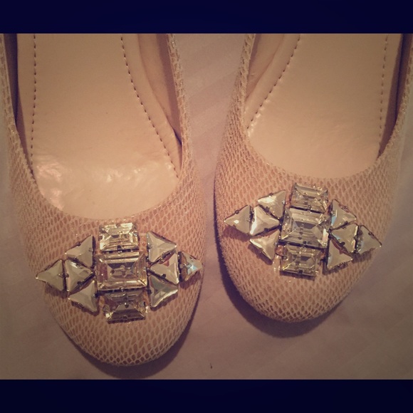 BCBG Nude wedges. Brand new with crystal embellishments. Super cute and comfy!