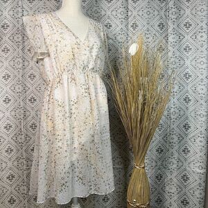 BCBG White Floral Print Midi Dress Sleeveless Empire Waist Ruffle Hem Size L