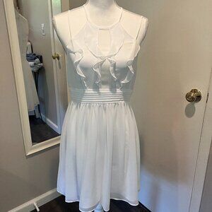 BCBGeneration White sleeveless ruffle front mini dress, Size 8