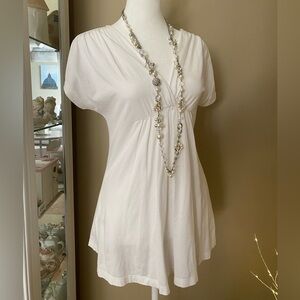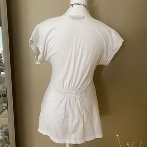 Adorable! This top by BCBG is totally all the rage! Crisp white and clean. Lightweight material! Cute with shorts or jeans!