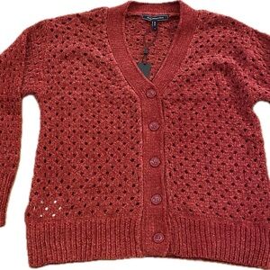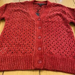 BCBG Women's Cardigan Red Sweater See through Cozy New size small