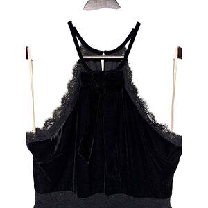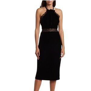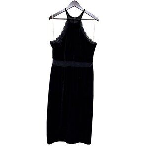 BCBG Women's Dress Lace Trim Sheath Black Velvet Lace Section Sleeveless Large