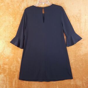 BCBG Womens Dress Small Black Shift Bell Sleeve Keyhole LBD Jersey Stretch