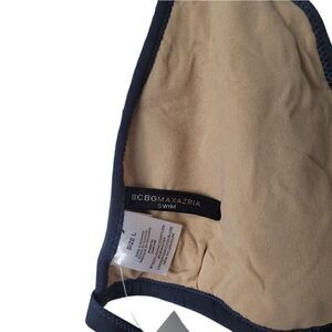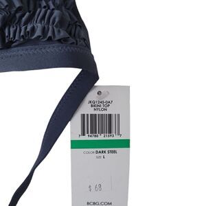 BCBG Women's Dusty Blue Ruffle Halter Bikini Top Size L NWT