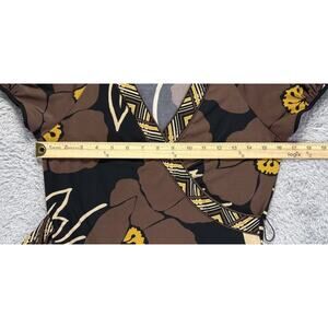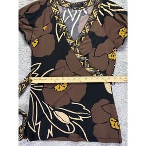 BCBG Y2K Vintage Womens Top Size Medium V Neck Brown Black Short Slv Faux Wrap