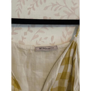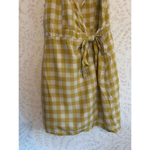 BCBG Yellow and White Gingham Wrap Mini Dress