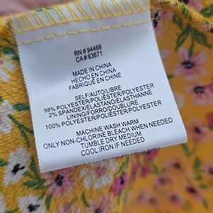 BCBG Yellow Orange Floral Milkmaid Ruched Midi Sundress Large