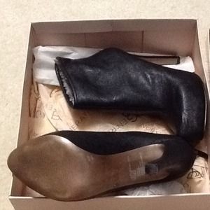 Black ankle boots with rabbit fur inside! Warm & chic!