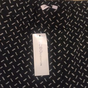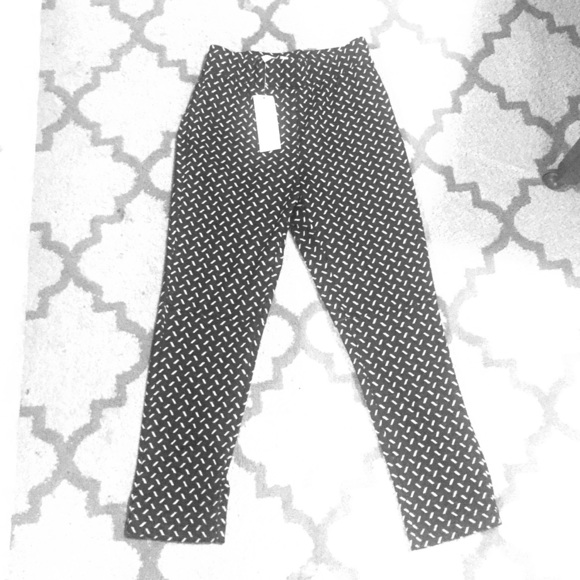 Never ever worn. Tags are still attached. I bought them recently for a new job, only to find out I can wear super casual clothes to work! The are navy and beige, patterned, ankle length. Still in the BCBG bag I bought it in. Well made material and BCBG clothing last forever. Thicker Pull up waist, no buttons or zippers. Warm.