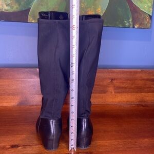 BCBG black leather & fabric tall knee high hidden wedge boots black size 10