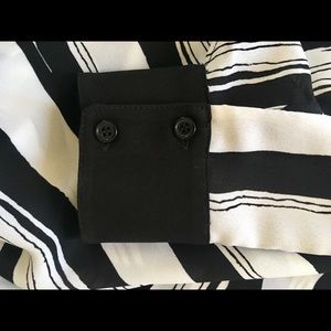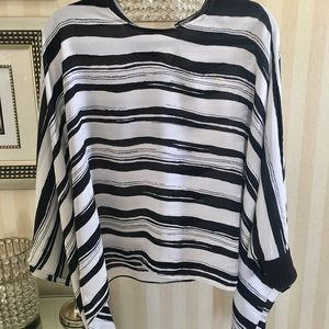 Gorgeous black and white BCBG blouse with flowing arms .. A absolute show stopper! Worn one time.. excellent condition!