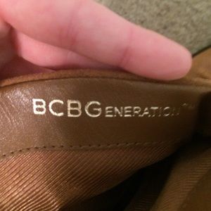 These are a size 8 but would definitely fit if you are a 7 & 1/2. They're a camel brown suede like material with a rounded toe and are scrunched up the sides. They have a slight heel to them and they have only been worn about 3-4 times. Great condition.