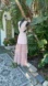 Quite the fashion statement. Looks like a suit vest and a skirt at the top but then there’s that beautiful tulle mermaid skirt. The color is a soft pink that pushes a little bit into the lilac. I’m going to say this is probably a vintage four years old so you’re unlikely to run into the same dress anywhere it certainly is outstandingand excellent condition