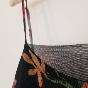 Like new, lined with adjustable straps and black mesh detail at neckline. Stretchy. Dress is 2 layers of mesh with built in slip