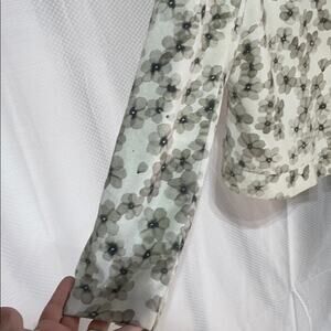 BCBG for Nordstrom M sage and grey floral jacket fully lined and super cute .worn once and in euc like new. Material is like a micro suede feel and super soft yet super durable