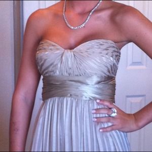 Beautiful dress! Gorgeous gold color. Vertical pleated design. Worn only once at a black tie function. Altered to fit 5'3" height with 4" heels.