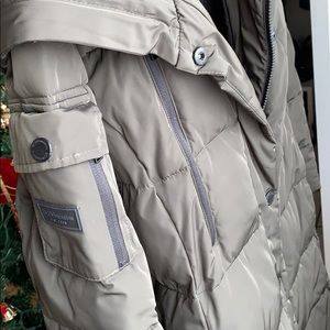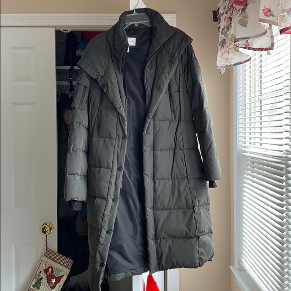Beautiful, very long, Michael Kors olive green coat. Like brand new, worn only one time. I had it taken in slightly to be a bit more fitted, belt included. Size L but slightly take. In