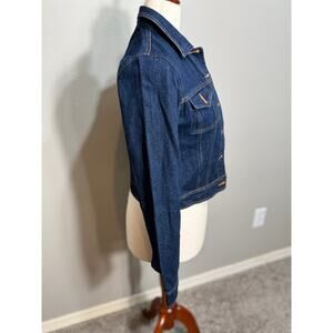 BCBG jean jacket dark blue denim 100% cotton button up collar pockets Sz S