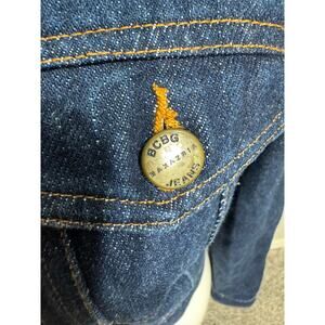 BCBG jean jacket dark blue denim long sleeve button up collar pockets Sz S