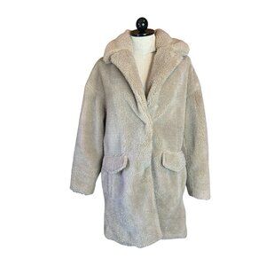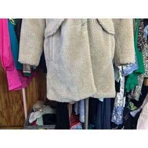 BCBG ladies Faux Fur Teddy Coat Cream SZ M NWT Warm Heavy Metallic