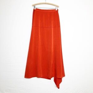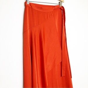 BCBG max Azria poppy, red maxi wrap satin skirt with asymmetrical hem.