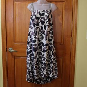 BCBG maxazria Midi Dress Floral Y2K Leaf Print 100% Silk Large Dress