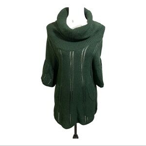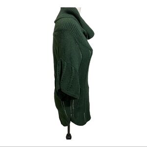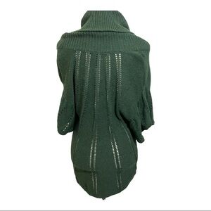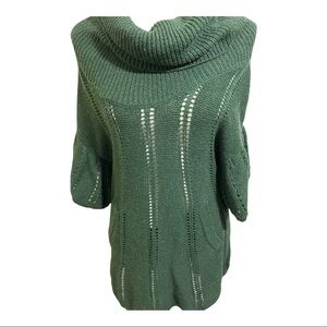 BCBG Maxazaria womens sweater merino blend knit cowl neck hunter green short sleeve front kangaroo pocket. Size Small.