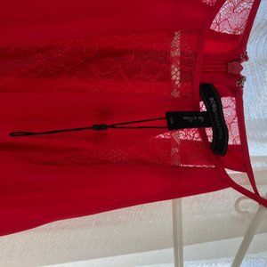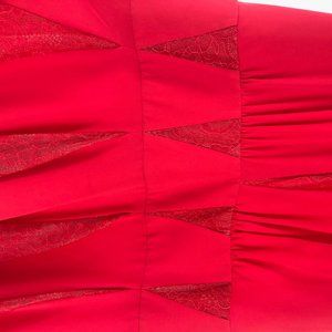 Only worn twice. A perfect wedding guest dress / cocktail dress. It photographs very red. The lace and dress are in perfect condition.