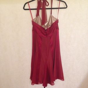 Work once - nude lining with red overlay - satin pieces - tie neck halter