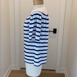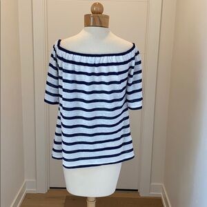 Adorable navy and off white stripped off shoulder summer top. Like new, worn 2-3 times max. Elastic top for one or two shoulder exposed.
