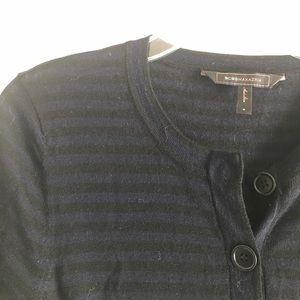 Cute sweater dress by BCBG. Top is navy and black stripes with button with a tie for the waist.