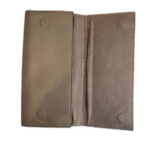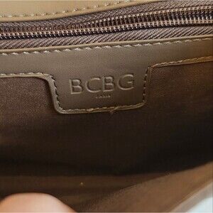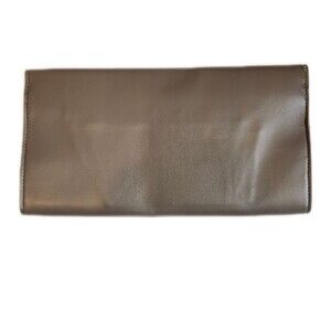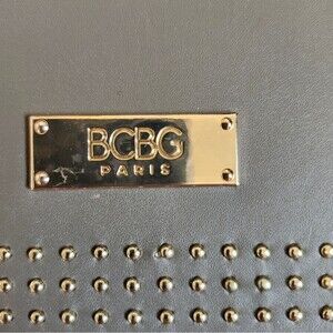 BCBG taupe tan clutch purse, metallic stud details, 11.5" x 6.5"