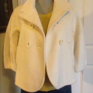 Soft white wool jacket From Bcbg. This jacket has cute 3/4 sleeve and has a bodice fit. Wore once and pristine !